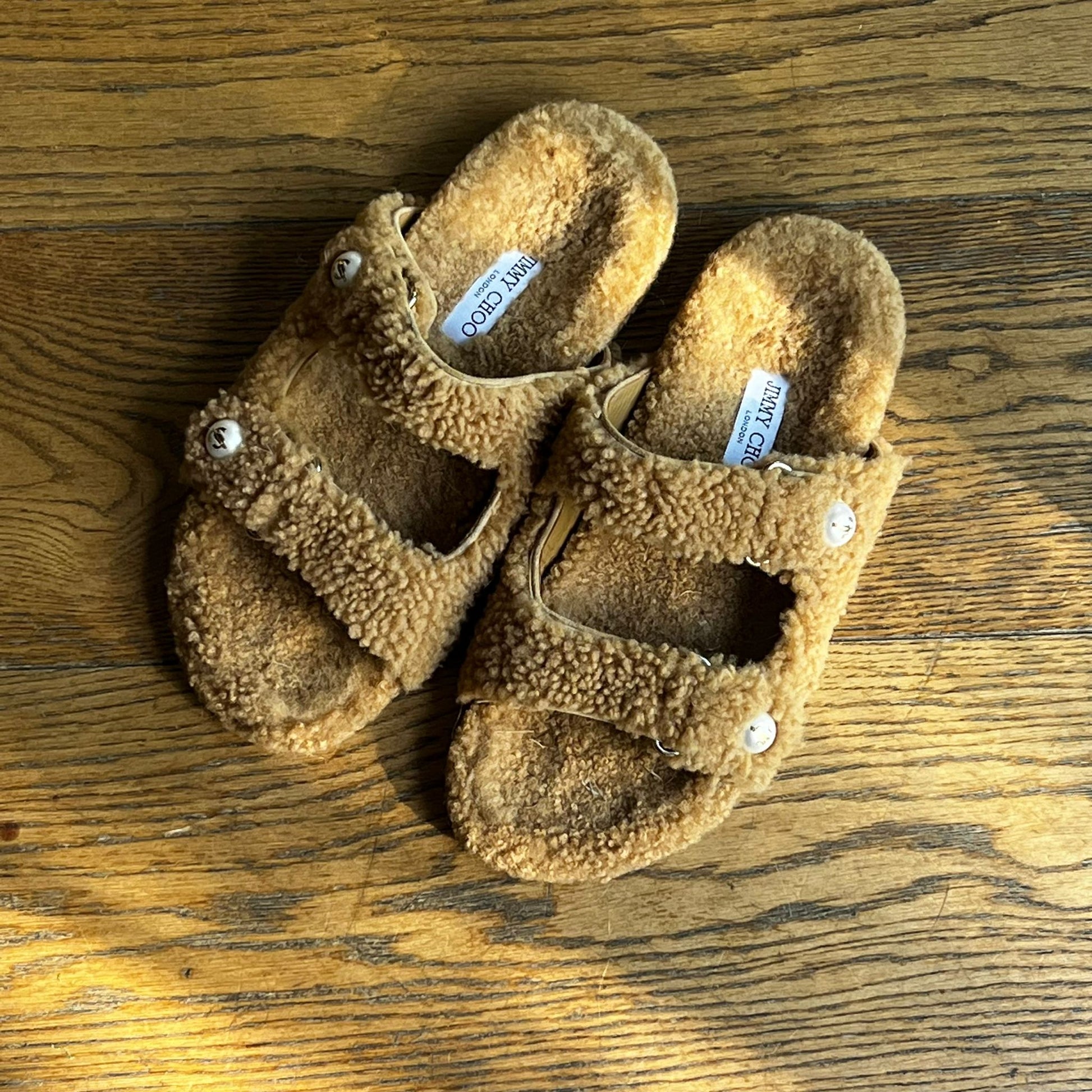 כפכפי פרווה חומות של המותג השווה ג׳ימי צ׳ו